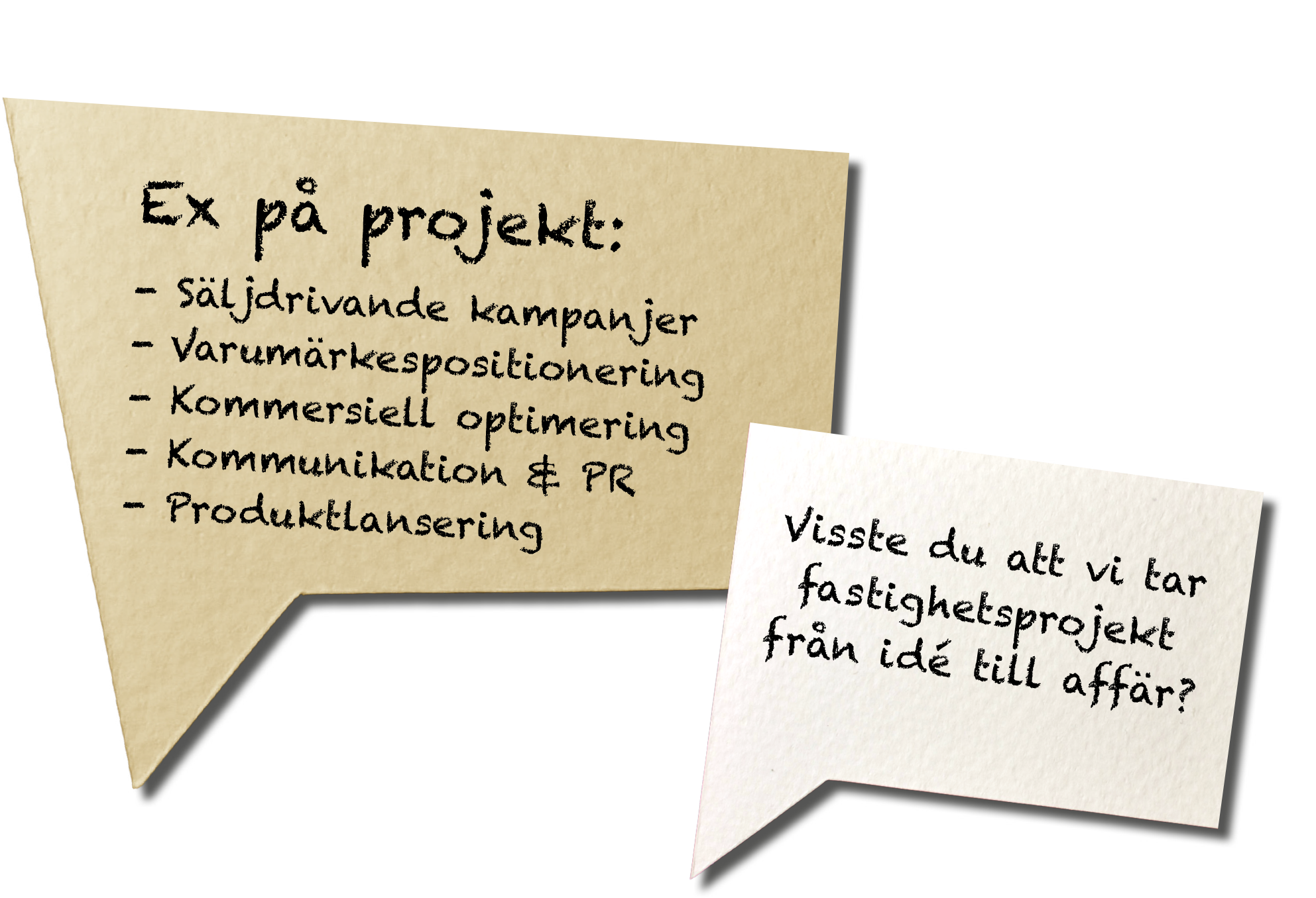 Oavsett inriktning på projekten är målet alltid detsamma – att skapa mätbara resultat och högre lönsamhet. Vi driver projekt som tillväxtstrategier, positionering, kundresor, lojalitetsprogram, tjänsteutveckling, produktlanseringar, varumärkesutveckling, kampanjer, leadgenerering och kommersiell optimering.