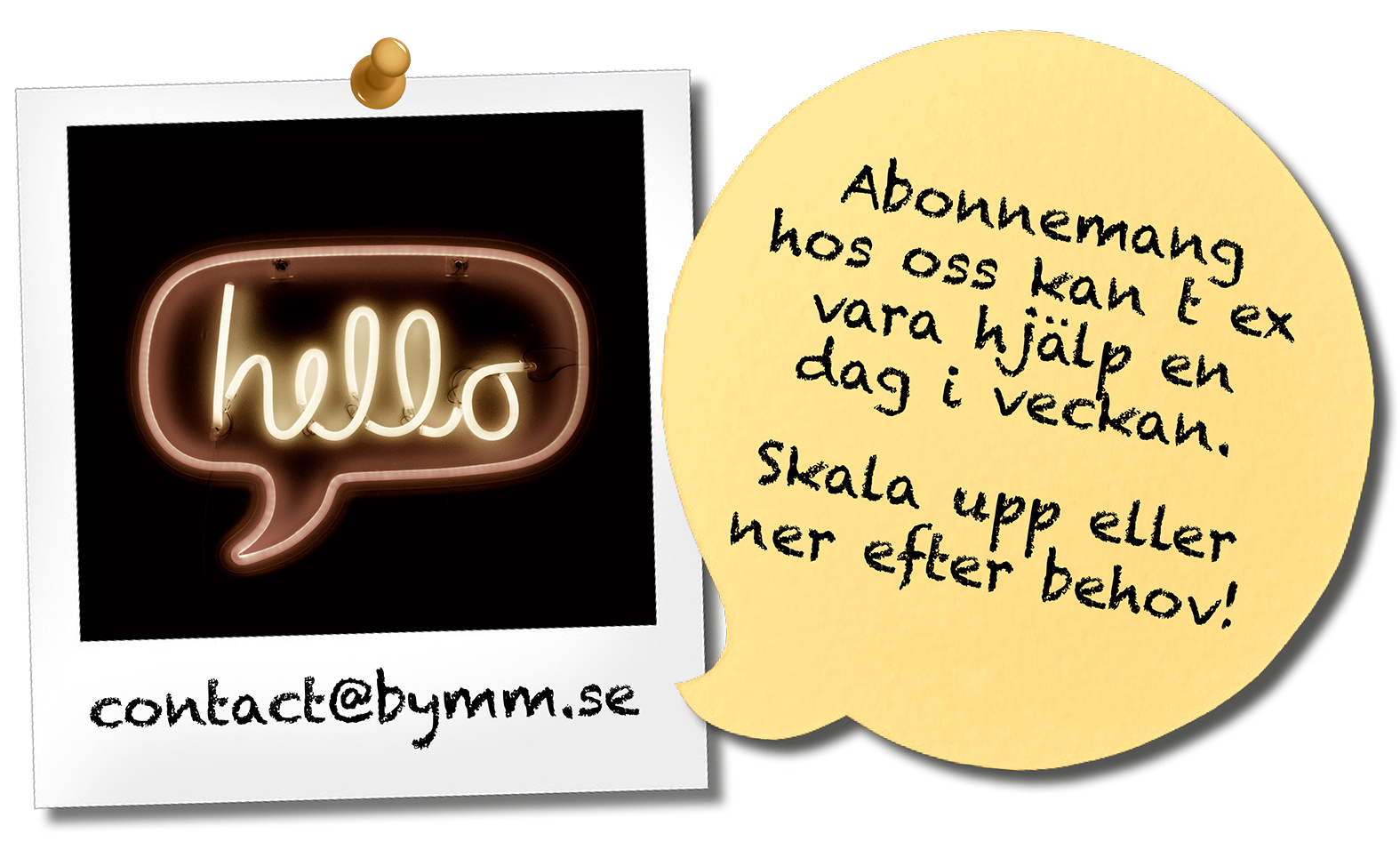 Hör av er till oss på contact@bymm.se eller i formuläret till höger för att diskutera hur vi kan hjälpa ert företag att nå era mål.